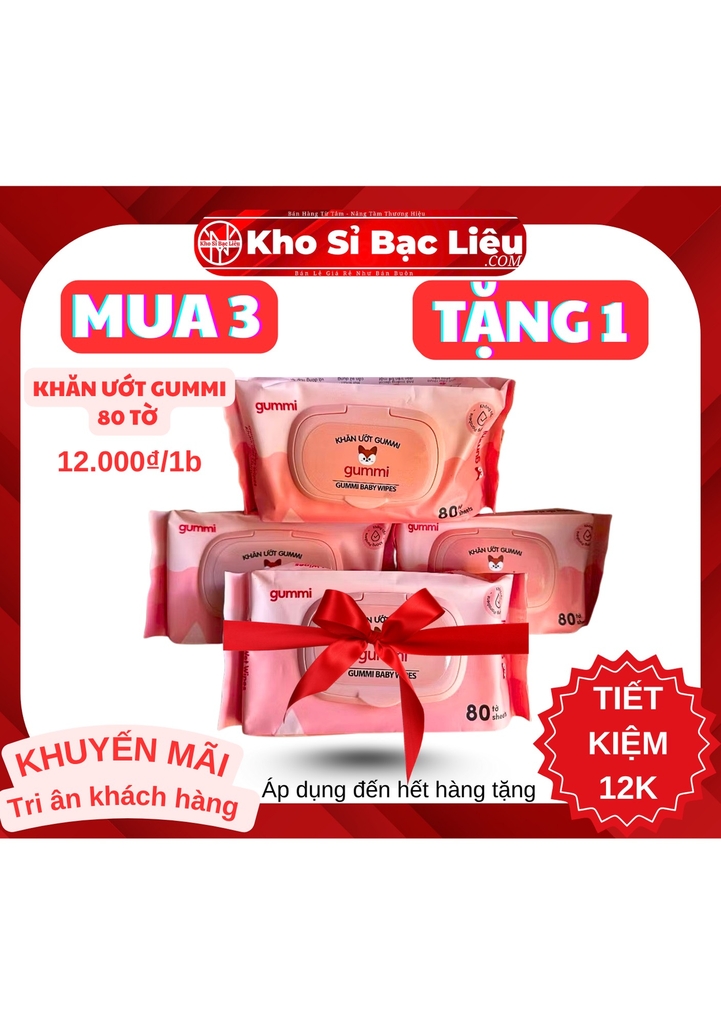 KM KHĂN ƯỚT GUMMI 80 TỜ THƯỜNG M3T1